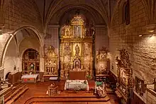 Iglesia de El Salvador (Luesia) (es). Le choeur est attribué à Gaspar Ramos, un sculpteur local, qui a réalisé son œuvre sur du bois vers 1630. Photo janvier 2023.
