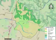 L'occupation des sols de la commune, telle qu'elle ressort de la base de données européenne d’occupation biophysique des sols Corine Land Cover (CLC), est marquée par l'importance des territoires agricoles (72 % en 2018), une proportion sensiblement équivalente à celle de 1990 (71,8 %). La répartition détaillée en 2018 est la suivante : zones agricoles hétérogènes (50,6 %), forêts (28 %), prairies (21,4 %)[18].