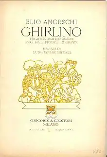 - Ghirlino, opéra en 3 actes, livret de E. Anceschi (, Milan, la Scala)
