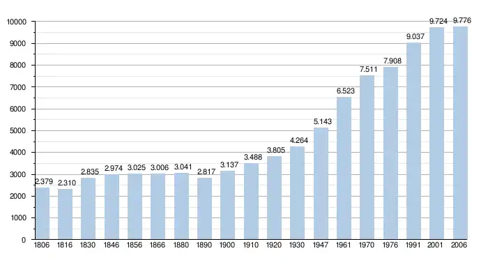 - Source : DGS - Remarque: 1831 jusqu'à 1981=recensement; depuis 1990=nombre d'habitants chaque 1er janvier[6]