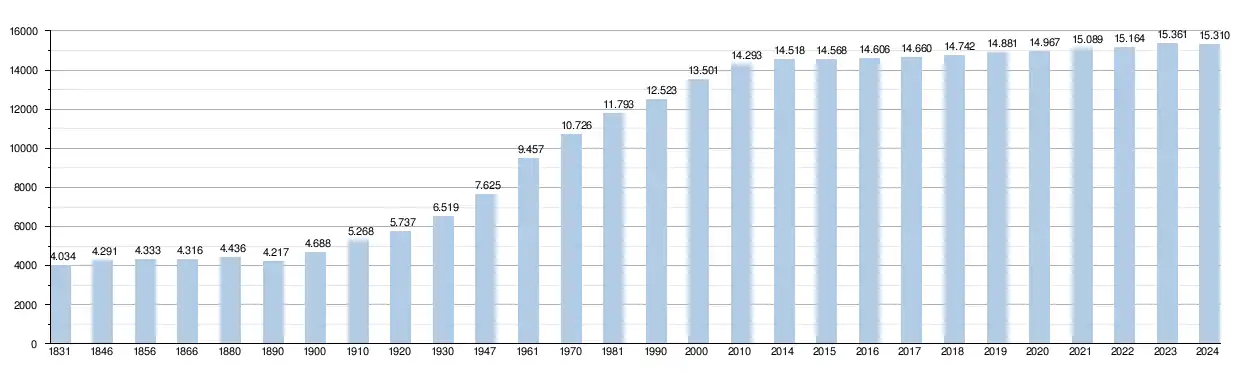 Elle comptait, au début 2024, 15 331 habitants (7 758 hommes et 7 573 femmes), soit une densité de 285,49 habitants/km²[4] pour une superficie de 53,70 km².