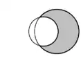 | En géométrie plane, la forme en croissant formée par deux disques s'intersectant est appelée "lunule". Au sein de chaque schéma, deux lunules sont présentes et l’une est grisée. | ||