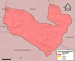 Le retrait-gonflement des sols argileux est susceptible d'engendrer des dommages importants aux bâtiments en cas d’alternance de périodes de sécheresse et de pluie. La totalité de la commune est en aléa moyen ou fort (94,5 % au niveau départemental et 48,5 % au niveau national). Sur les 110 bâtiments dénombrés sur la commune en 2019, 110 sont en aléa moyen ou fort, soit 100 %, à comparer aux 93 % au niveau départemental et 54 % au niveau national. Une cartographie de l'exposition du territoire national au retrait gonflement des sols argileux est disponible sur le site du BRGM[20],[Carte 3].