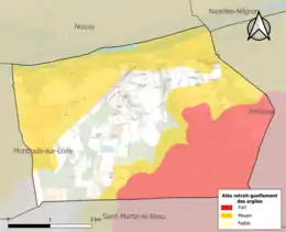 La commune est vulnérable au risque de mouvements de terrains constitué principalement du retrait-gonflement des sols argileux[25]. Cet aléa est susceptible d'engendrer des dommages importants aux bâtiments en cas d’alternance de périodes de sécheresse et de pluie. 67,9 % de la superficie communale est en aléa moyen ou fort (90,2 % au niveau départemental et 48,5 % au niveau national). Sur les 431 bâtiments dénombrés sur la commune en 2019, 145 sont en aléa moyen ou fort, soit 34 %, à comparer aux 91 % au niveau départemental et 54 % au niveau national. Une cartographie de l'exposition du territoire national au retrait gonflement des sols argileux est disponible sur le site du BRGM[26],[27].