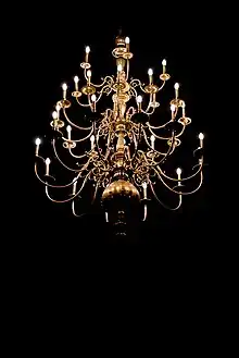 Un type de lustre particulier se rencontre dans les églises les plus anciennes, qu'on appelle lampesier au Moyen Âge, dont la couronne de lumières est emblématique de la Cathédrale Notre-Dame de Paris (lustre à chandelles sur une pièce circulaire).