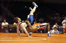 - par supériorité technique, c'est-à-dire lorsqu'un des lutteurs atteint 8 points de plus que son adversaire, ce qui arrête le match et donne la victoire à ce lutteur.