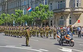 Pendant la Première Guerre mondiale, le Luxembourg est occupé par les Allemands, en violation de la neutralité, jusqu'en 1918. La grande-duchesse Marie-Adélaïde, contestée par une grande partie de la population du fait de certaines maladresses, voire erreurs politiques, choisit de se retirer dans un couvent et abdique au profit de sa sœur Charlotte qui, malgré certaines oppositions, épouse le prince Félix de Bourbon-Parme (beau-frère du dernier empereur d'Autriche et prince français). Après la Première Guerre mondiale de multiples aspirations annexionnistes surgissent en France et surtout en Belgique pour annexer le Luxembourg[18]. Mais les négociations du traité de Versailles en 1919 confirment finalement l'indépendance du pays tandis qu'un référendum populaire (en ) consolide l'indépendance du pays et la monarchie.