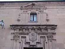 L'élément le plus remarquable est la porte principale, qui s'ouvre sur un côté de la façade principale. Elle présente une porte à linteau avec des moulures en forme d'oreille entre des pilastres à chapiteaux composites, un entablement avec des corbeaux décorés de rosettes, surmontés de pinnacles décoratifs et une petite fenêtre également avec des moulures en forme d'oreille et des moulures entrelacées couronnée par un fronton triangulaire avec un tympan à rosettes. Les armoiries de Charles III avec la toison d'or complètent l'ensemble. Ces armoiries ont dû remplacer celles des Jésuites après l'expropriation. Au-dessus de la porte, il y avait un beffroi en fer forgé avec une cloche, qui a été enlevé lors de la dernière rénovation.