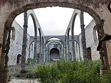 Le deuxième cloître de service est dépourvu des colonnes principales en pierre, les galeries supérieures étant soutenues par de fines colonnes en bois sur des bases en pierre. Ces cloîtres étaient reliés par un arc par lequel passaient les processions lors des différentes célébrations qui traversaient les deux cloîtres, quittant l'église et y revenant. Le premier des cloîtres, le principal, était appelé la Cour des orangers. Le second est connu comme la Cour des cyprès.