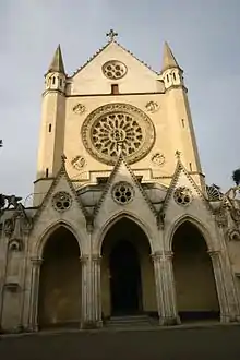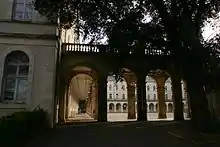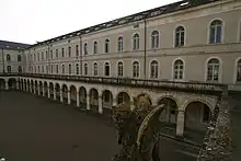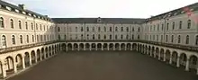 L'organisation des bâtiments respecte les plans types d'établissements scolaires et d'institutions religieuses du milieu du XIXe siècle[26]. Elle se rapproche aussi de l'architecture monastique, puisqu'on y trouve un cloître qui entoure une cour centrale[25]. En effet, à l'arrière, sur trois côtés, des galeries entourent une cour rectangulaire. La toiture du cloître aux baies cintrées forme une terrasse en hauteur. La chapelle du lycée, construite en 1862, est de style néo-gothique[25] : elle ferme le quatrième côté de la cour.