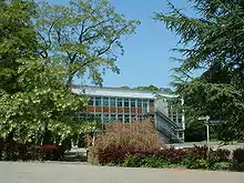 - le gymnase sur le côté sud de l'allée d'accès principale, occupe l'emplacement de l'ancien manoir rasé en 1963[23] ;