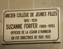 - 1936-1954 : Mlle Suzanne Forfer, officier de la Légion d'honneur, cofondatrice du journal Le Monde en 1944.
