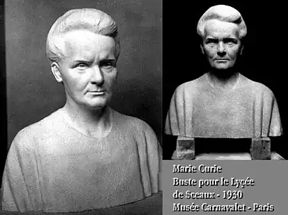 Albert Chartier a réalisé le fronton en bas-relief, intitulé Les Sciences et les Lettres, ainsi que le buste de Marie Curie, trônant à l'origine dans le parloir (actuelle salle des professeurs), aujourd'hui dans le vestibule d'entrée.