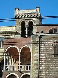 En 1686, un incendie provoqué par une bougie que le père Clément Vialar oublia d'éteindre, détruisit la bibliothèque, ainsi que l'église située à l'entrée de l'établissement. De nombreux manuscrits, jetés par les fenêtres, purent être sauvés à la dernière minute. Grâce à l'intervention de l'ambassadeur de France Pierre de Girardin, l'église fut restaurée rapidement. De plus, profitant d'un privilège accordé jusqu'alors uniquement aux mosquées, la nouvelle église comporta une coupole couverte de plomb. Au cours de cette restauration, le mufti de Galata offrit au père supérieur Bénier, des colonnes de marbre byzantines qui furent installées à l'entrée de l'église où on peut encore les voir.