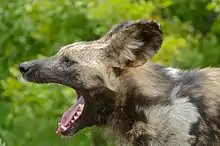 Le lycaon[1] (Lycaon pictus)[2],[3],[4] est un mammifère carnivore de la famille des canidés. De nos jours, il vit exclusivement en Afrique subsaharienne australe et centrale, dans les steppes et les savanes, à l'exception du lycaon de la sous-espèce du lycaon pictus sharicus, aussi dit lycaon saharien, qui vit dans certaines régions du Sahara. Il est aussi appelé chien sauvage d'Afrique[2],[4], chien-hyène[2], cynhyène[2],[3],[4], loup peint[2],[3],[4], chien chasseur[4].