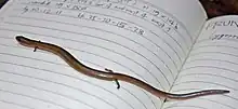 C'est un lézard très fin et allongé, aux pattes quasi atrophiées, lui donnant l'aspect d'un serpent.