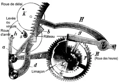 - Un article détaillé sur ce mécanisme existe en allemand « traduisible » dans Wikipédia : Schlagwerk (Uhr)