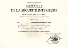 | Médaille de la sécurité intérieure | ||||||||||