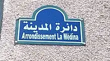 Plaque marquant l'arrondissement de la Médina