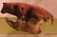 La faune sud-américaine du Pléistocène était très variée, comprenant par exemple le paresseux terrestre Megatherium[23]. Le continent abritait également quelques espèces herbivores comme le litopterne Macrauchenia, Cuvieronius, Stegomastodon, Doedicurus, Glyptodon, Hippidion et Toxodon. Les principaux prédateurs de la zone étaient Arctotherium et Smilodon.