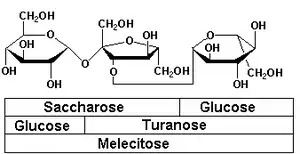 Le Mélézitose (ou melecitose[3]) est un triholoside (oligoside) présent dans le miel, les miellats et la sève de nombreux arbres et plantes.