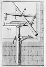 L'instrument de mesure des angles, pendant les deux siècles concernés, est principalement le quart de cercle mobile. Il va évoluer et son exactitude ira en s'améliorant.