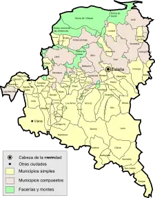 La capitale de la mérindade est Estella-Lizarra, ainsi que la municipalité la plus peuplée. Les suivantes sont San Adrián, Azagra, Mendavia, Andosilla, Ayegui et Lerín .