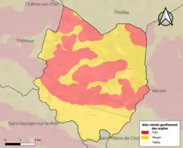 La commune est vulnérable au risque de mouvements de terrains constitué principalement du retrait-gonflement des sols argileux[17]. Cet aléa est susceptible d'engendrer des dommages importants aux bâtiments en cas d’alternance de périodes de sécheresse et de pluie. La totalité de la commune est en aléa moyen ou fort (90 % au niveau départemental et 48,5 % au niveau national). Sur les 366 bâtiments dénombrés sur la commune en 2019, 366 sont en aléa moyen ou fort, soit 100 %, à comparer aux 83 % au niveau départemental et 54 % au niveau national. Une cartographie de l'exposition du territoire national au retrait gonflement des sols argileux est disponible sur le site du BRGM[18],[Carte 2].