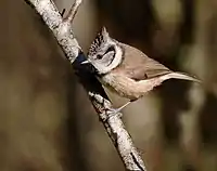 La Mésange huppée (Lophophanes cristatus, anciennement Parus cristatus) est une espèce de passereaux de la famille des Paridés.