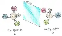 Les premières recherches réalisées sur la météorite ont déterminé que les acides aminés sont formés de façon abiotique et de configuration D. Les protéines trouvées sur la Terre sont toutes faites d’acides aminés qui, quant à eux, ont une configuration L[réf. souhaitée]. Cependant, quelques années plus tard, d'autres analyses ont permis de découvrir sur Murchison de l'alanine ayant une configuration L[18]. Cette découverte a amené certaines personnes à croire que ceci pouvait être survenu à la suite d'une contamination terrestre[19]. De plus, en 1997, un nouvel acide aminé provenant de Murchison, soit l'isovaline, a aussi été observé avec une configuration L[20]. Par contre, à la suite de cette deuxième observation, les chercheurs ont suggéré d'expliquer cette asymétrie moléculaire de la configuration par une origine possible extérieure au système solaire plutôt que par une contamination terrestre potentielle.