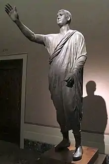 Détail du plissé de la toge et de la main gauche de l'Arringatore.