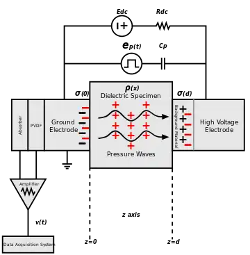 Le principe de mesure consiste à détecter des ondes acoustiques générées par le mouvement des charges d'espaces lorsqu'elles sont soumises à une impulsion de tension.