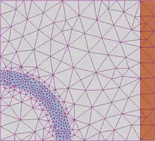 - soit utiliser des éléments dont les côtés (en 2D) ou arêtes (en 3D) sont courbes, on parle de raffinement de type p.