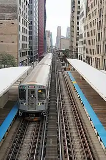 Le métro de Chicago (communément appelé Chicago ‘L’ pour « Elevated »[4]) est un réseau de transport en commun ferré qui dessert la ville de Chicago et sa proche agglomération, dans l'État de l'Illinois, aux États-Unis. Il est principalement connu pour une de ses particularités : il est en grande partie aérien[5],[6].