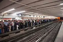 Le métro de Mexico est un des moyens de transport en commun de l'agglomération de Mexico capitale du Mexique. En 2019, le métro de Mexico a transporté environ 4,5 millions de passagers par jour (1 660 millions de passagers). Le réseau comporte 12 lignes de métro totalisant 200,9 km en service voyageurs (225,5 km en comptant les voies de service et de dépôt) avec 195 stations[2]. Le métro est géré par STC Metro (abréviation de Sistema de Transporte Colectivo Metro). Ce réseau est complété par une ligne de métro léger dans le sud de la ville qui fait 13 km de long et comporte 18 stations entre Tasqueña et Xochimilco et une ligne de chemin de fer suburbaine de 27 km et 7 stations au nord entre Buenavista - Cuautitlan et mise en service en 2008.