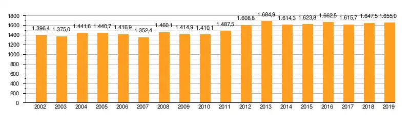 Tableau de la fréquentation du réseau de métro depuis 2002 (en millions par an) :