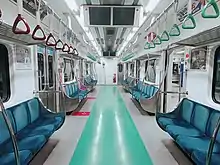 Les voitures ont quatre portes de chaque côté entre lesquelles se trouvent des sièges pouvant accueillir 7 personnes, sauf aux extrémités qui comportent 2 rangées de 3 places réservées aux personnes âgées, aux personnes à mobilité réduite, femmes enceintes…