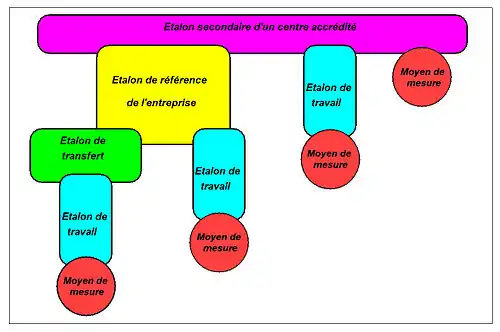 Il est indispensable pour l'entreprise de disposer d'un étalon de référence (ou de plusieurs) confié au service métrologie. Raccordé aux étalons nationaux, il doit être accompagné d'un procès-verbal indiquant les résultats de l'étalonnage. Son utilisation doit être aussi réduite que possible afin d'éviter la détérioration de son exactitude. C'est pourquoi l'entreprise passe par un, voire plusieurs niveaux intermédiaires qui jouent le rôle d'étalons de travail.