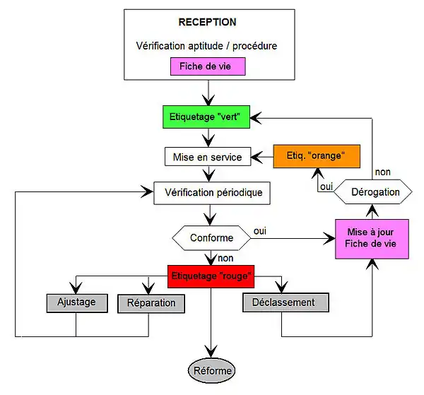 - réparation : étiquetage « rouge », magasin prison et nouvelle vérification après réparation ;