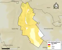 Le retrait-gonflement des sols argileux est susceptible d'engendrer des dommages importants aux bâtiments en cas d’alternance de périodes de sécheresse et de pluie. 80,1 % de la superficie communale est en aléa moyen ou fort (52,8 % au niveau départemental et 48,5 % au niveau national). Sur les 292 bâtiments dénombrés sur la commune en 2019, 286 sont en aléa moyen ou fort, soit 98 %, à comparer aux 70 % au niveau départemental et 54 % au niveau national. Une cartographie de l'exposition du territoire national au retrait gonflement des sols argileux est disponible sur le site du BRGM[16],[Carte 2].
