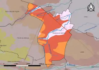 Par ailleurs, le sol du territoire communal peut faire l'objet de mouvements de terrain liés à la sécheresse. Le phénomène de retrait-gonflement des argiles est la conséquence d'un changement d'humidité des sols argileux. Les argiles sont capables de fixer l'eau disponible mais aussi de la perdre en se rétractant en cas de sécheresse[47]. Ce phénomène peut provoquer des dégâts très importants sur les constructions (fissures, déformations des ouvertures) pouvant rendre inhabitables certains locaux. Celui-ci a particulièrement affecté le Loiret après la canicule de l'été 2003. La quasi-totalité du territoire de la commune est soumise à un aléa « moyen » face à ce risque, selon l'échelle définie par le Bureau de recherches géologiques et minières (BRGM)[48].