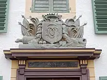 Château, ou manoir de Diesbach, implanté sur le site d'une ancienne maison forte construite pour la famille de Bonvillars au début du XVIe siècle. La maison est achetée en 1547 par Jost Freitag, qui l'achève en 1562 par la pose de la charpente actuelle. Réaménagement vers 1627 pour l'avoyer Nicolas de Diesbach (1559-1630). Un pavillon oriental est lié au château par une galerie vers 1670. En 1756, le château passe au comte Jean de Diesbach-Torny, chambellan de l'empereur Charles VI. Il est agrandi en 1787-1789 pour son fils, le comte et maréchal de camp Frédéric de Diesbach-Torny, avec régularisation des façades. Dans les pièces des deux étages supérieurs, l'édifice conserve une remarquable série de papiers peints, dont certains de la manufacture Réveillon, à Paris, d'autres provenant de la célèbre manufacture Zuber, à Rixheim. On y a retrouvé 27 papiers posés entre le milieu du XVIIIe siècle et 1835 environ[7]. Le château est l'une des cinq demeures connues au monde qui conservent un ensemble significatif de papiers peints du XVIIIe siècle[5].