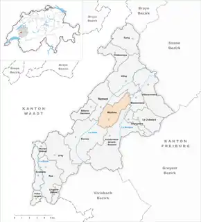 Mézières (Méjire en patois fribourgeois[3]) est une localité et une commune suisse du canton de Fribourg, située dans le district de la Glâne.