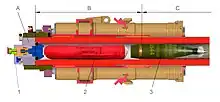 - Tiré d'un canon M284 dans des obusiers M109A5 et M109A6 avec Charge 8S