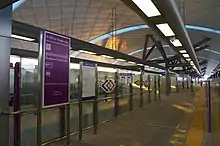 Un système de signalisation CBTC (Bombardier Cityflo 650) équipe la ligne, permettant de garantir un intervalle minimal de 90 secondes entre chaque train[5].