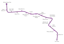 La deuxième ligne de métro, la ligne violette, est inaugurée le entre Khlong Bang Phai et Tao Pun (Tao Poon), compte 16 stations et est longue de 23 km. La ligne est 100% aérienne, et les 21 trains de 3 voitures sont fournis par le constructeur japonais J-TREC[4].