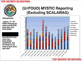 Le programme MYSTIC débuta en 2009, mais atteint sa pleine mesure et la capacité d'enregistrer le contenu des appels téléphoniques d'un pays tout entier pendant 30 jours, en 2011. Des documents de 2013 affirment que le programme de surveillance pourrait être étendu à d'autres pays[1].