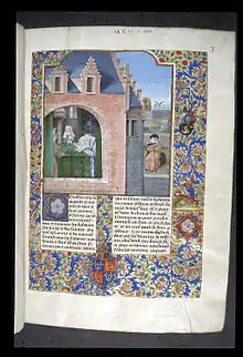 - Le frontispice du Miroir historial, traduction française, par Jean de Vignay, du Speculum historiale de Vincent de Beauvais[7],[19].
