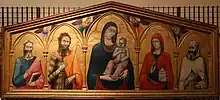 Vierge à l’Enfant entourée d'un saint apôtre, de saint Jean Baptiste, sainte Marie-Madeleine, et saint Bernard; quatre anges (c. 1320), tempera su tavola, 120 × 280 cm, Pistoia, Musée civique (it) (inv. 1975.16).