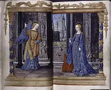 | Livre d'heures à l'usage de Bourges | 1505-1510 | Bibliothèque nationale de France, Paris (Lat.1375)[29] | 155 folios, 16,5 × 10,5 cm. 11 grandes miniatures. | ![]() |